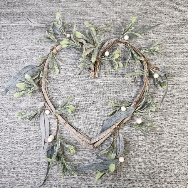 Add a touch of love and festive charm to your home with this stunning heart-shaped wreath featuring glitter-covered faux mistletoe. Measuring approximately 37cm wide by 7cm tall, this gorgeous wreath base combines elegance with whimsy, making it perfect for both indoor and outdoor display all year round. Its shimmering mistletoe detail adds a magical sparkle, ideal for enhancing your home décor or seasonal decorations. Whether hung on your door, wall, or mantel, this heart and mistletoe wreath brings warmth, love, and a hint of Christmas spirit to any space. Durable and stylish, it’s the perfect accent to celebrate love every day.