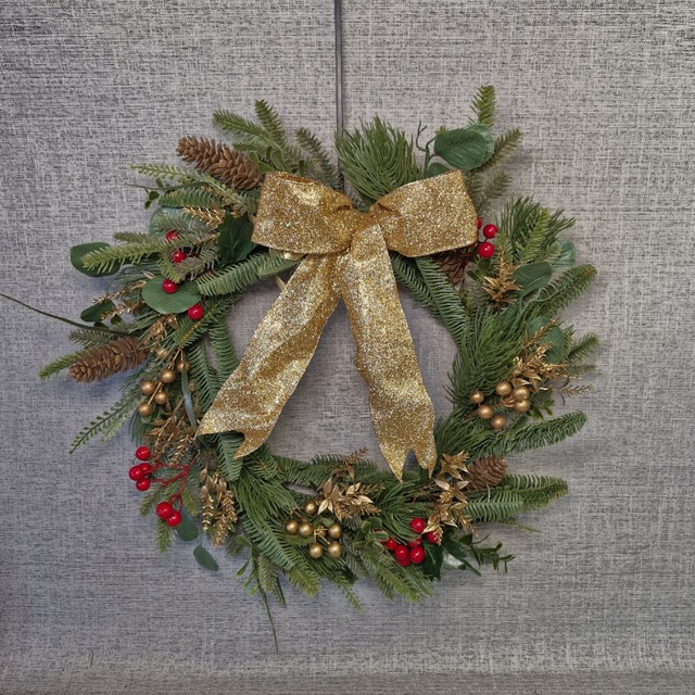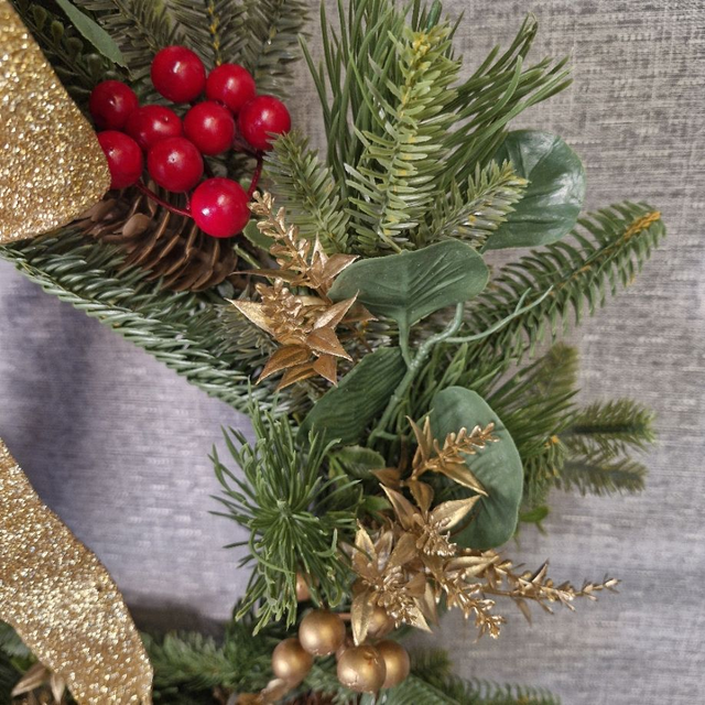 X-Large Artificial Mixed Foliage Christmas Wreath - Gold and Red
